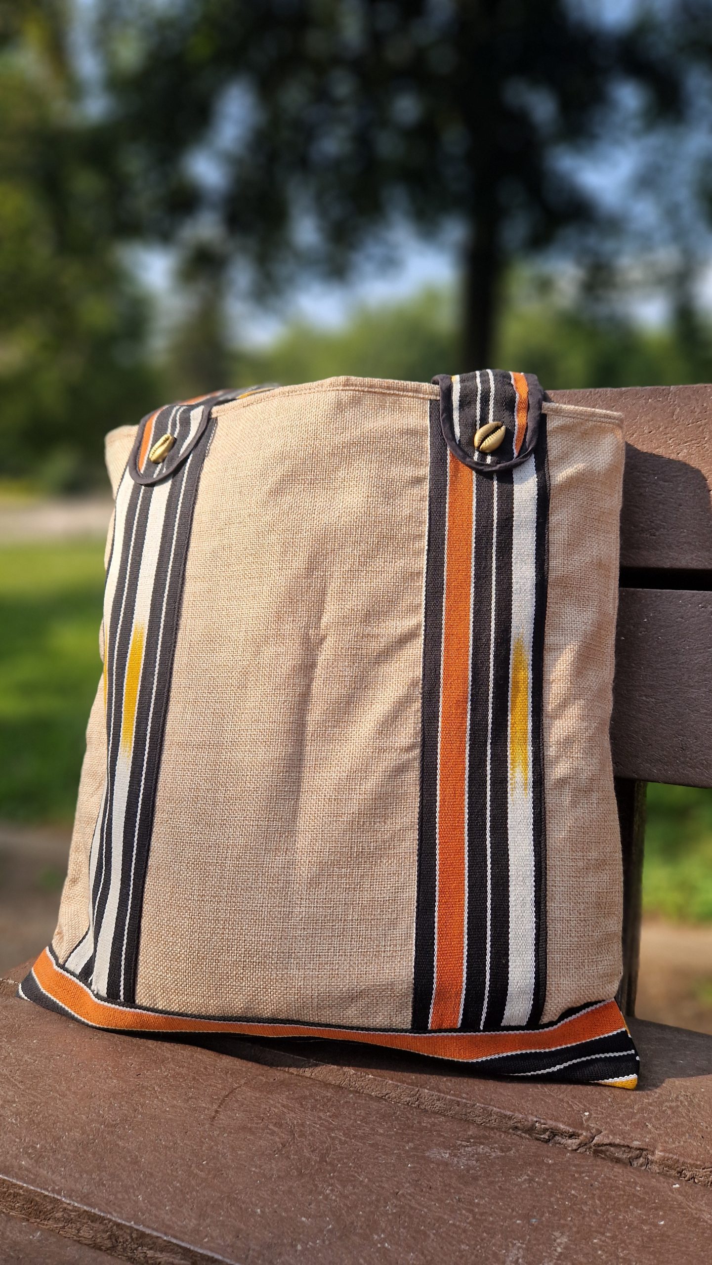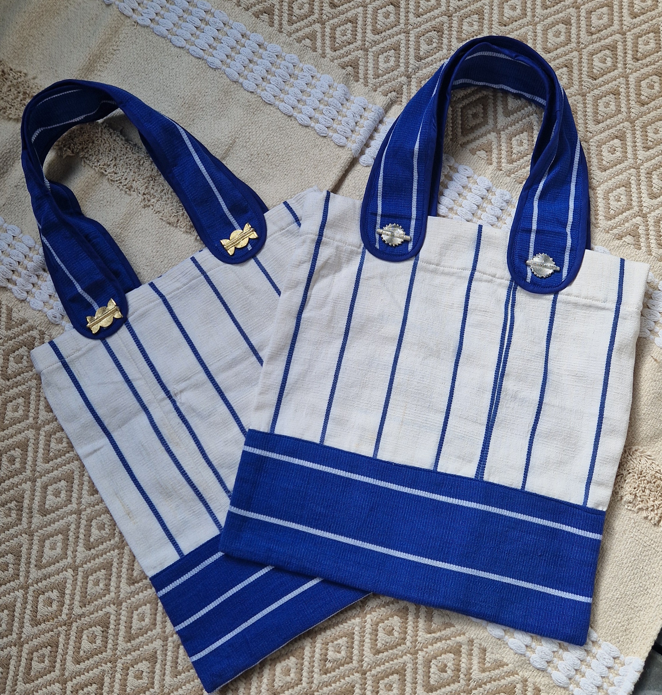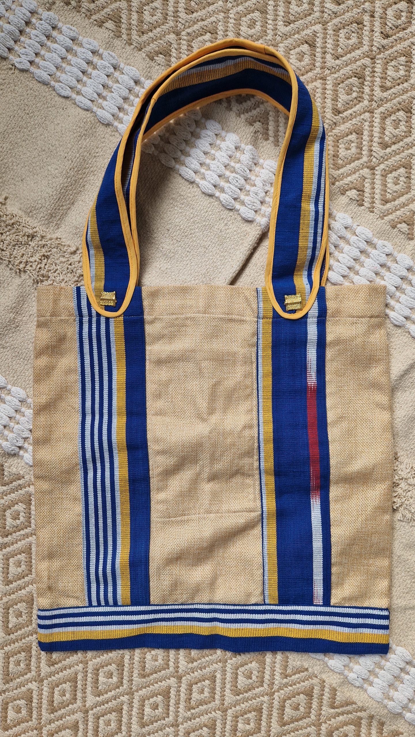Totebag en toile de jean et Faso dan fani du Burkina Faso.